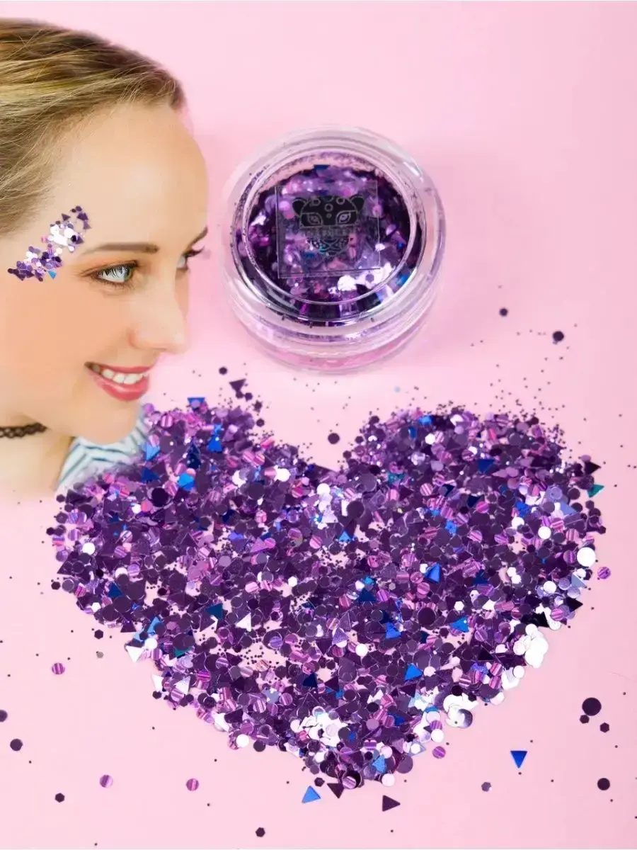 Продукт подходит как для профессионального использования, так и для любительского творчества. Подходит для нанесения на лицо и тело. Удобная упаковка позволяет хранить и транспортировать глиттер без риска рассыпания.
