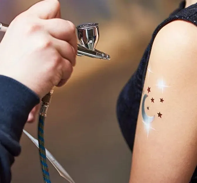 Быстросохнущая краска для аэротату Держится на коже до 7-10 дней. После нанесения имеет минимальную липкость. Гипоаллергенна.Преимущества краски для аэротату : - Водостойкая - Стойкая, держится на коже до 7-10 дней.- Менее густая, с пониженным расходом: одного флакона достаточно для нанесения 100-150 рисунков среднего размера (5 см на 5 см ).- Поверх краски возможно нанесение блеска-Не вызывает раздражения и аллергических реакцийКраска распыляется с оптимальным расходом при диаметре сопла 0.3 мм.Давление на выходе необходимое для распыления от 2 до 4 атм.Сделать краску менее густой можно добавив в нее чистый спирт или закрепитель для аэротату (не более 5%).