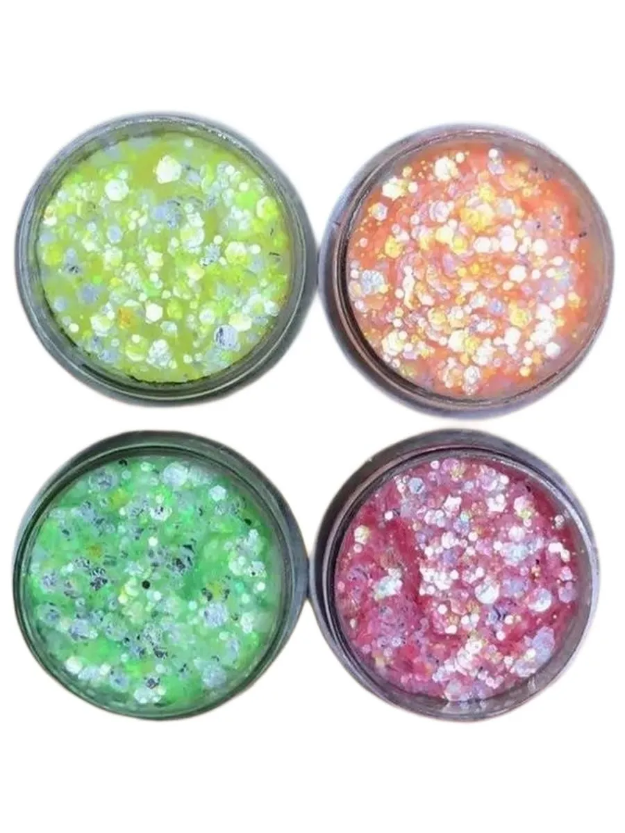 Неоновые крем-блёстки в баночке по 10 гр 4 шт : жёлтый, оранжевый, салатовый, коралловый