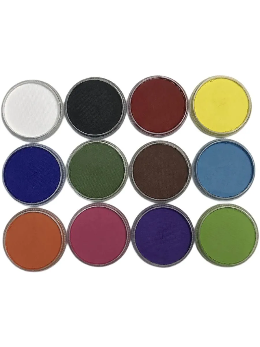 Краски: 12 базовых цветов в баночках по 32 гр + 3 сплит-кейка по 15 гр
