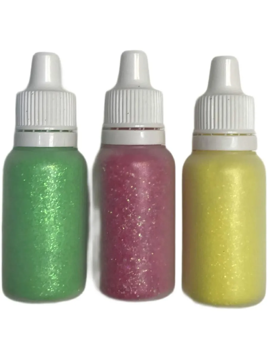 Сухие блёстки 15 гр во флакончике с распылителем 3 шт: розовый, жёлтый, салатовый