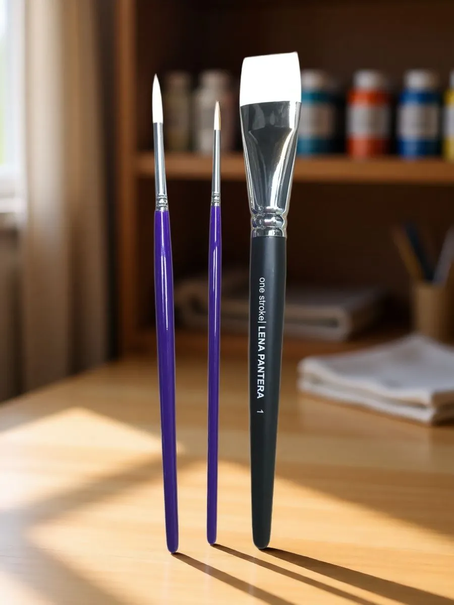 Кисти 3 шт (2 круглые №3 и №8 и широкая плоская для сплит-кейков №1)