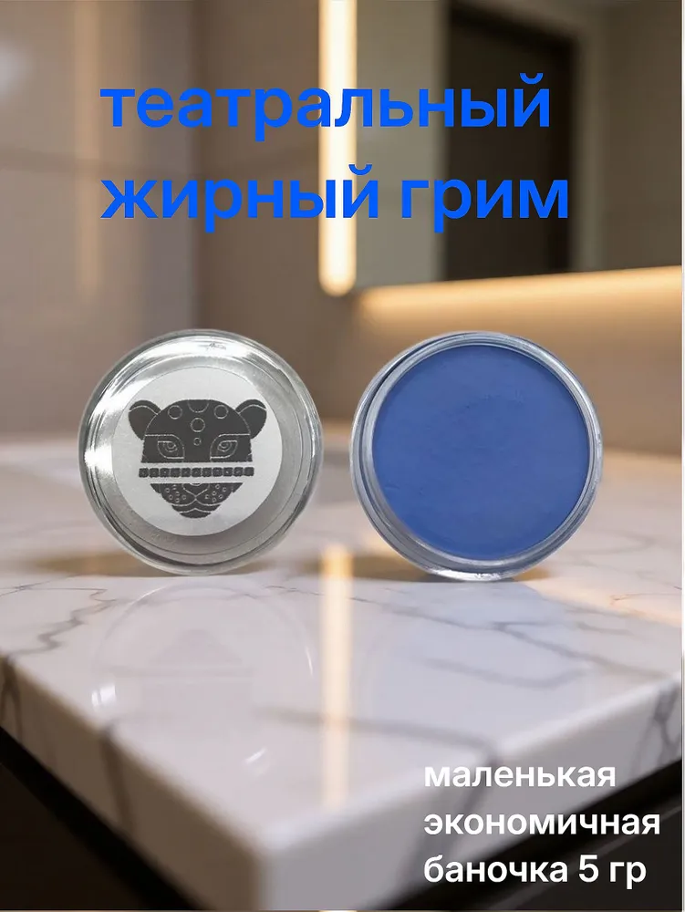 Ярко-голубой жирный театральный грим, маленькая баночка 5 гр.